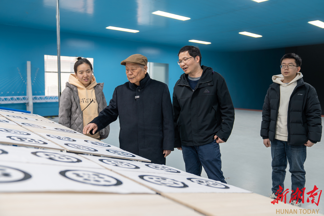 ▲12月12日,我国工程院院士、湖南大学土木工程学院教授陈政清(左)辅导团队进行实验。